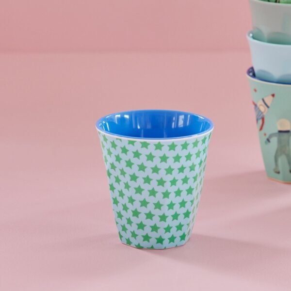 Melamine Cup with Green and Turquoise Star Print – Medium – 250 ml