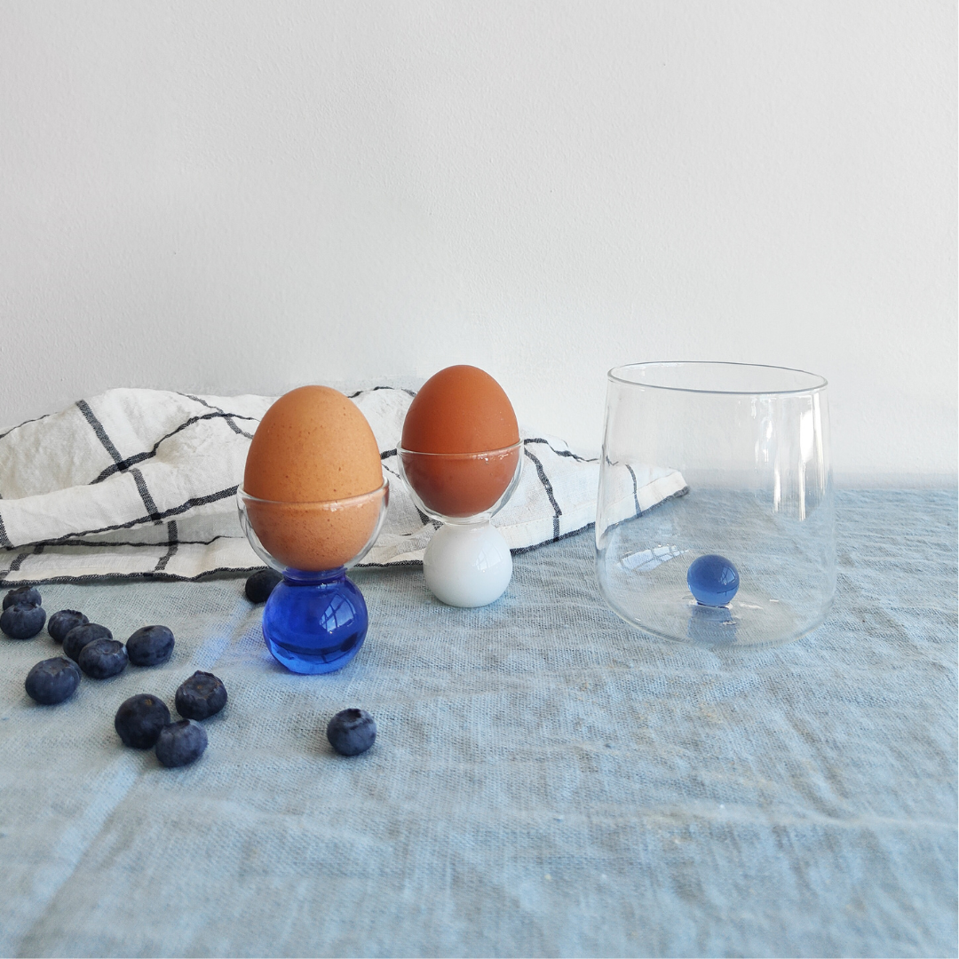 Six handcrafted borosilicat Zafferano glass tumbers. inspired by mediterranean sea shells. Available in 6 assorted colours or all clear.